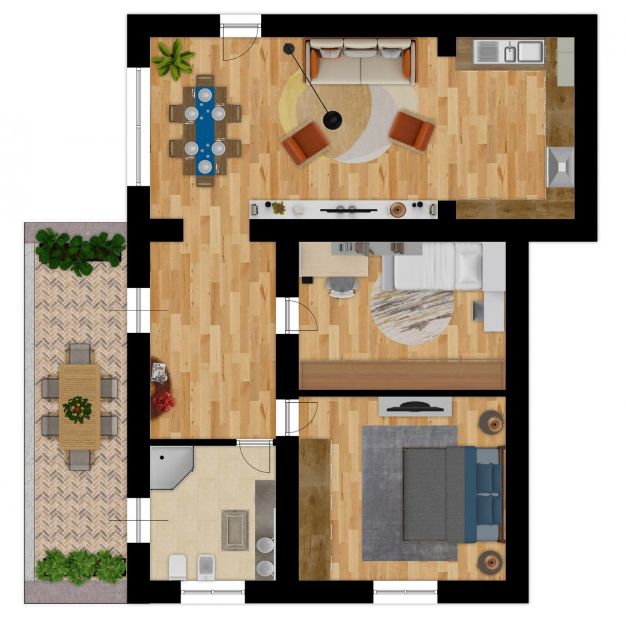 La disposizione interna è ideale per famiglie o come investimento per una casa vacanza: l'appartamento è composto da un'accogliente zona soggiorno-pranzo; una cucina aperta molto pratica. Troverete inoltre due ampie camere da letto matrimoniali